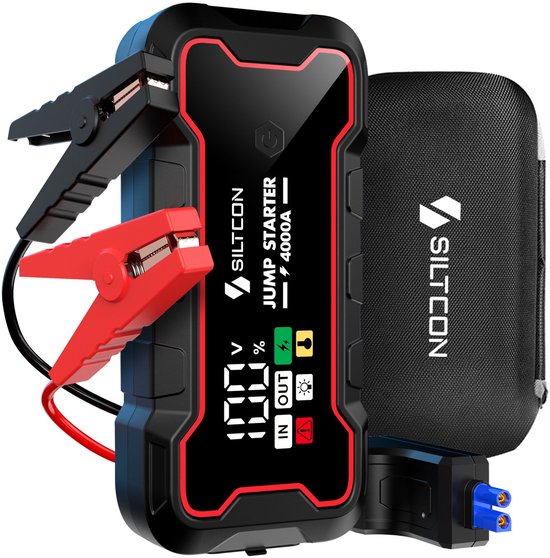 Siltcon® 12V 4-in-1 Jumpstarter Voor Auto - 4000A / 24.000 mAh Powerbank - Startkabels - Jumpstarters - 18W USB-C Snellader - LED Zaklamp - SOS Noodlicht - Noodpakket - Alle Voertuigen - Inclusief Opberghoes