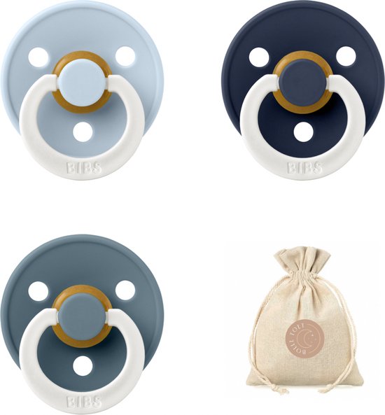 Bibs fopspenen maat 1 0-6 maanden - set 3 spenen + bolletoet speenzakje - Glow Petrol, Deep space, Baby blue